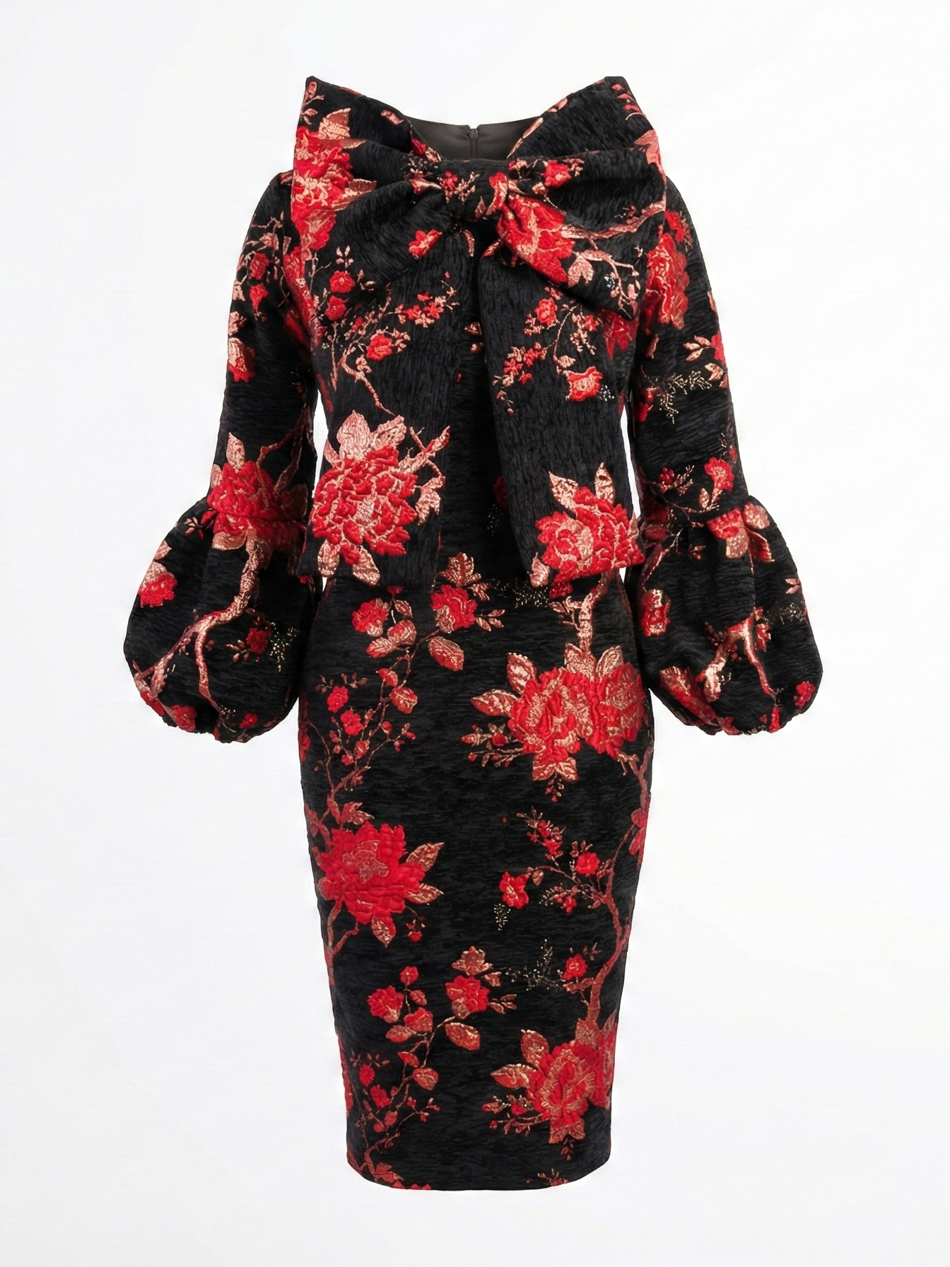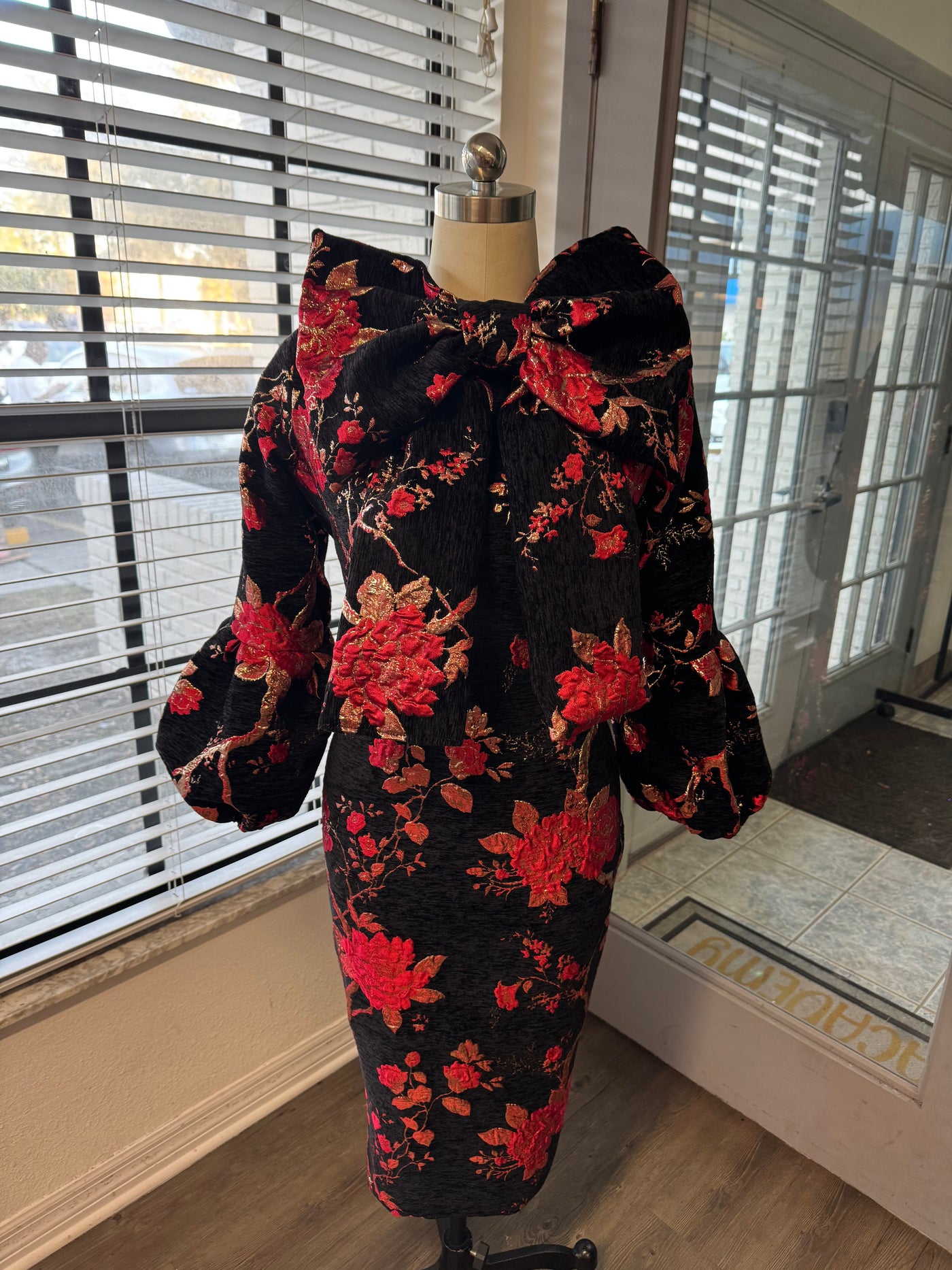 Red black gold brocade dress Sale