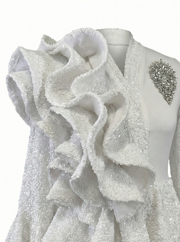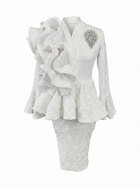 Discover timeless elegance with this white ruffle peplum dress, engineered for the discerning woman who refuses to compromise on style or comfort. The architectural peplum design creates a flattering silhouette while the innovative sequin and scuba fabric blend delivers both visual impact and practical stretch. This dress transitions effortlessly across formal events, cocktail gatherings, and upscale celebrations with its versatile white palette and refined construction.